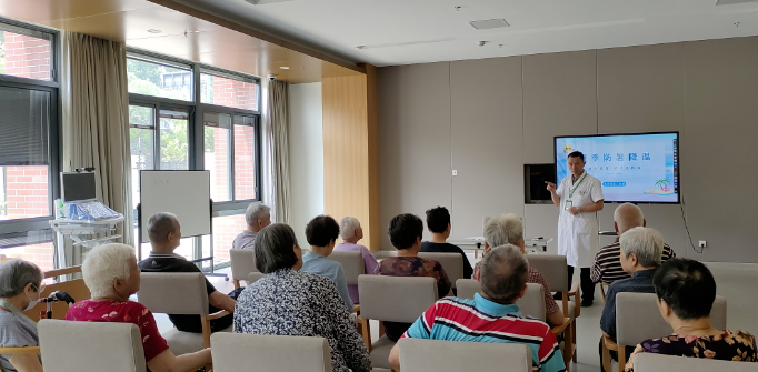 近日持续高温,为帮助长者们科学防暑、健康度夏,院内医生余医生为长者们带来了一场生动实用的夏季防暑健康宣教。现场氛围热情澎湃,多位长者早早来到活动室,认真听讲、积极互动,展现了极高的健康意识!