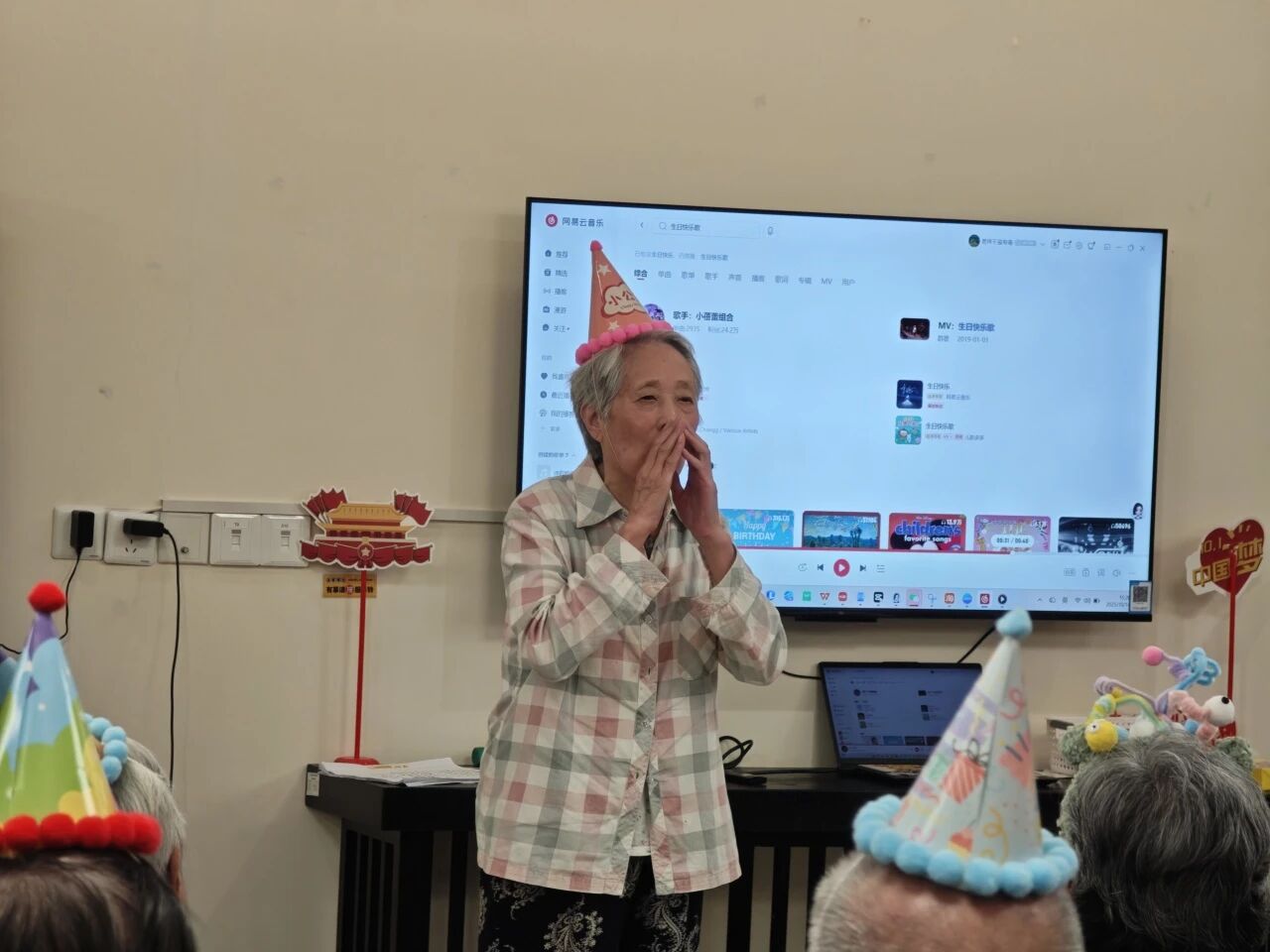 活动现场,院内工作人员精心剪辑的祝福视频温暖上线。视频里,工作人员与院内老伙伴们一同出镜,真挚为寿星与新入住长者送上问候与祝愿,让每位长者都清晰感受到集体的接纳与深切关爱,温情瞬间填满了整个现场。