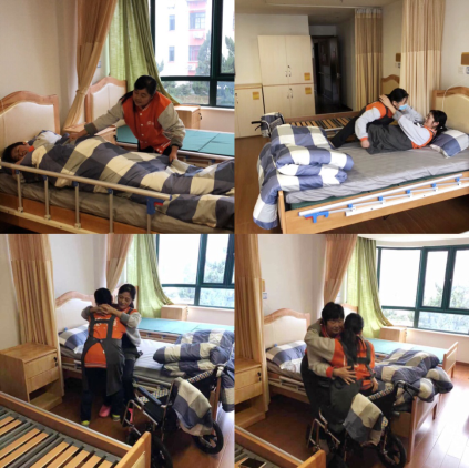 此次竞赛内容为卧床长者更换床单和轮椅移动两个实操项目。情境设置为70岁的李奶奶因脑中风导致左侧肢体偏瘫,经治疗能独立坐起,但不能行走,根据考官指导,现阶段需要护理员帮助她更换床单与轮椅移动。竞赛的目的是考核护理员在日常工作中是否将护理知识与实际工作相结合,是否学以致用,并将所学应用到实际工作中。宗旨在以赛促练,以赛代训,通过技能竞赛来检验和督促养老护理员爱岗敬业。此次实操竞赛不仅要求护理员具有娴熟的操作技能,同时也需要具备较强的护理常识以及良好的沟通能力,真正从专业化服务上体现爱老敬老。