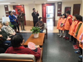 二楼的长者们早已再大厅做好等待孩子们的出现。小朋友的表现也没有辜负长者们的等待。第一个节目时一位同学的独唱,虽然是自己一个人唱歌,但小朋友毫不胆怯,放声歌唱,长者们纷纷拍掌叫好,第二个节目是诗朗诵,五位小朋友一齐朗诵,第三个节目便是猜谜语了,长者们对于小朋友出的谜语还是很快就能答出来的,一位同学见此便出了个脑筋急转弯,想要难倒各位爷爷奶奶,“小动物们一起到便利店买东西,但是只有小羊没有被赶出来,其他的动物都被赶出来了,这是为什么呢?”果不其然奶奶们没有答出来,随即小朋友说出答案:“因为便利店二十四小时不打烊。”引得长者们笑成一团,小朋友也不好意思地笑了。