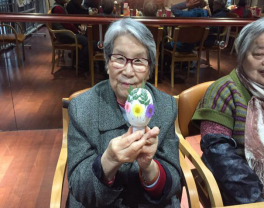 老师将准备好的材料分发到各位长者的手里。刚开始在长者们手中的小灯平平无奇,随即老师将装饰品,也就是一些干的真花交到各位长者手中,便开始指导如何装饰这盏小灯。长者们的想法都很不同,有的想着将红花贴在上头,有的想着将绿叶放在上面可能会更好看……就这样,每位长者手中便多了一盏与众不同、全靠自己DIY的小夜灯了。