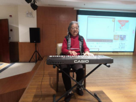 听,是刘奶奶在为大家弹奏生日快乐歌。在社工的带动下、在刘奶奶优美的琴声之下,大家一起打着拍子唱歌呢!刘奶奶的琴声与大家的祝福寿星们一并收到,曲毕,大家献上了自己的掌声。