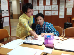 老师为长者讲解构图方法 老师带领长者观察模特细节