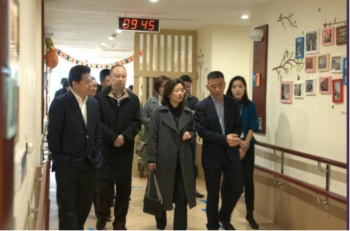 2018年11月29日,成都高新区甘副主任一行领导来我院参观考察。华康健康董事长聂建明、CEO王东峰等人陪同参观向领导详细介绍了院内发展现状、设备情况以及入住长者概况等。