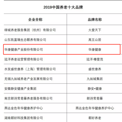 【华康健康】荣获2019中国养老十大品牌称号。全国老龄办原副主任、中国老龄事业发展基金会常务副理事长阎青春、中华老人文化交流促进会常务副会长刘文、中国林业与环境促进会秘书长程谦、中国健康养老产业联盟副主席、中国医院协会企业医院分会常务副会长兼秘书长邹殿新等领导、专家为“2019中国养老十大品牌授牌”。