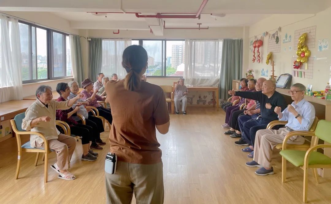清晨的阳光透过云层,尽管外面细雨绵绵,但养老院的活动室里却充满了活力与温暖。早上9点30分,社工准时带领长者们开展晨间健康操活动。在欢快的音乐声中,长者们伸展四肢、摆动身躯,唤醒元气满满的一天。这样的晨操活动,不仅增强了长者的体质,还促进了长辈之间的交流,让梅雨季节的生活更加充实和愉悦。