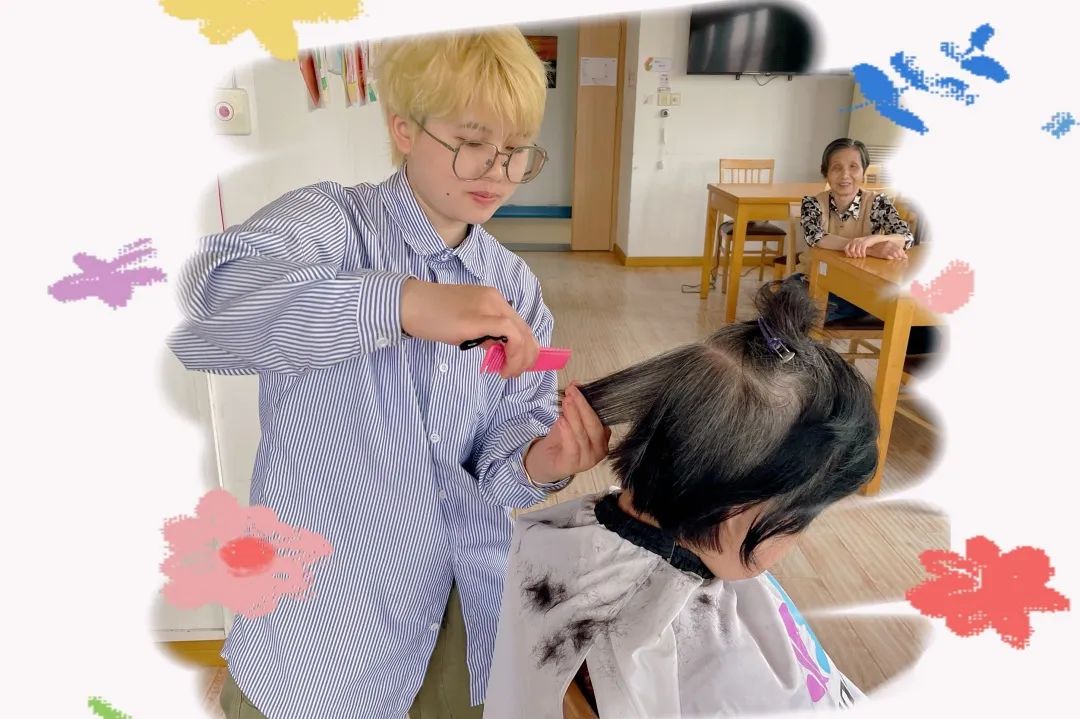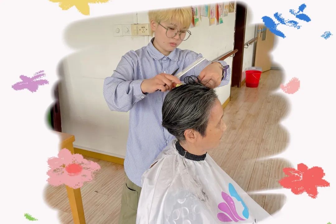 3. 贴心的理发服务: 考虑到雨季外出不便,养老院安排爱心志愿者上门为长者们提供免费的公益义剪服务,让长辈们在舒适的环境中享受到专业而贴心的理发服务。