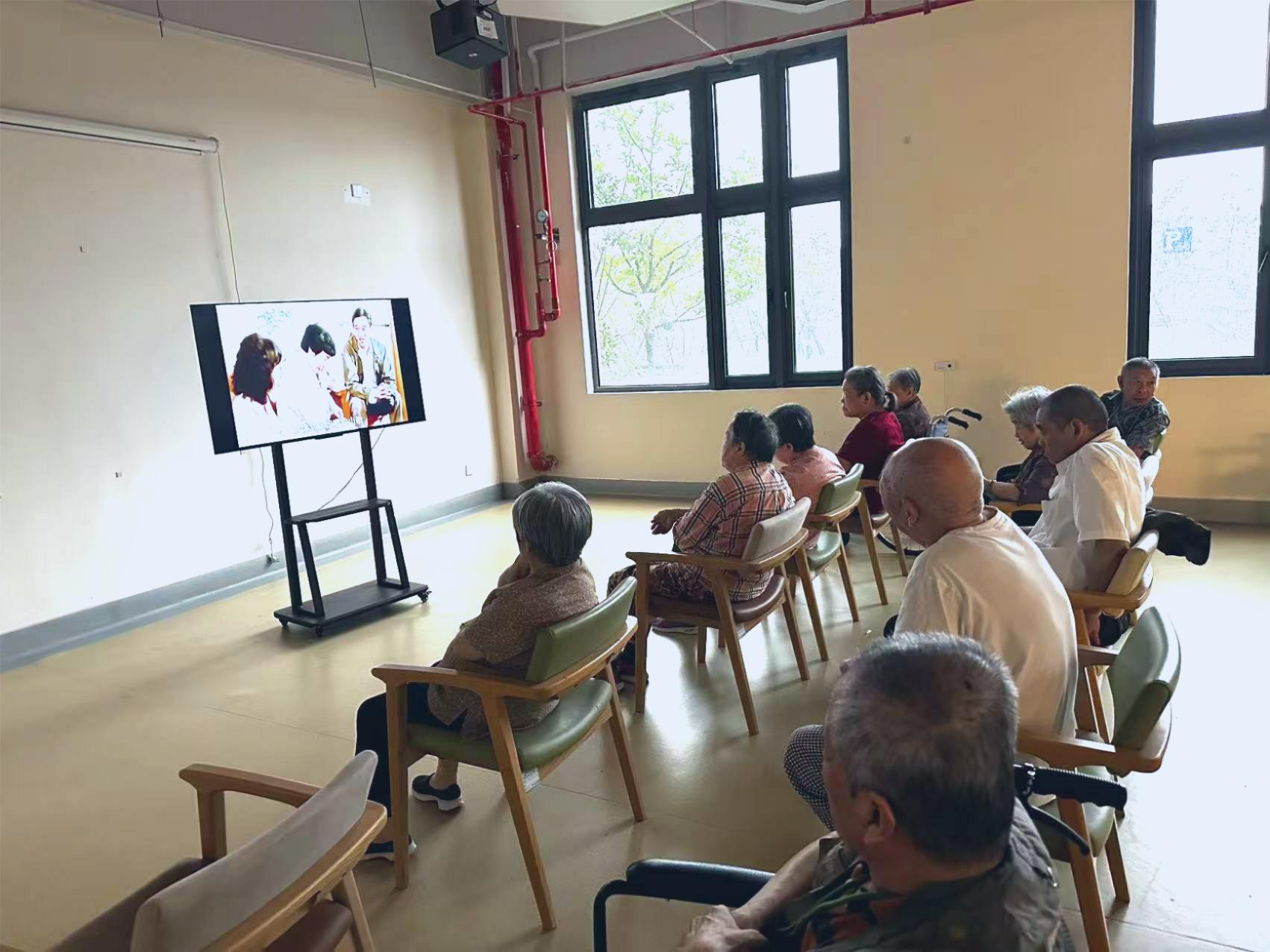 活动现场布置温馨舒适,观影设备调试良好,为长者们提供了优质的视听体验。长者们看得津津有味,全神贯注,脸上洋溢着幸福的笑容,仿佛跟随银幕回到了青春岁月。温馨的观影氛围有效舒缓了长者的情绪,带来了愉悦的精神享受。