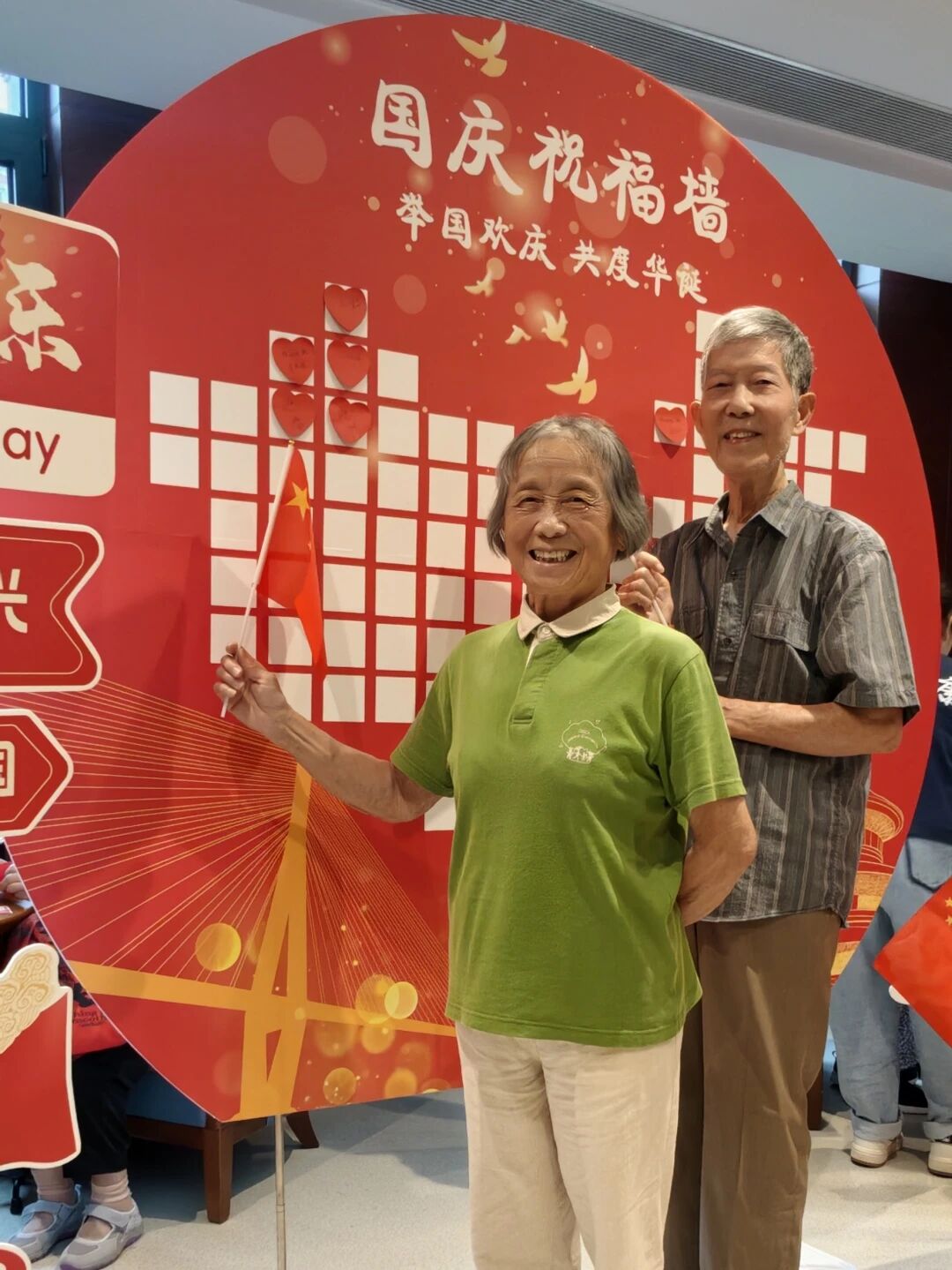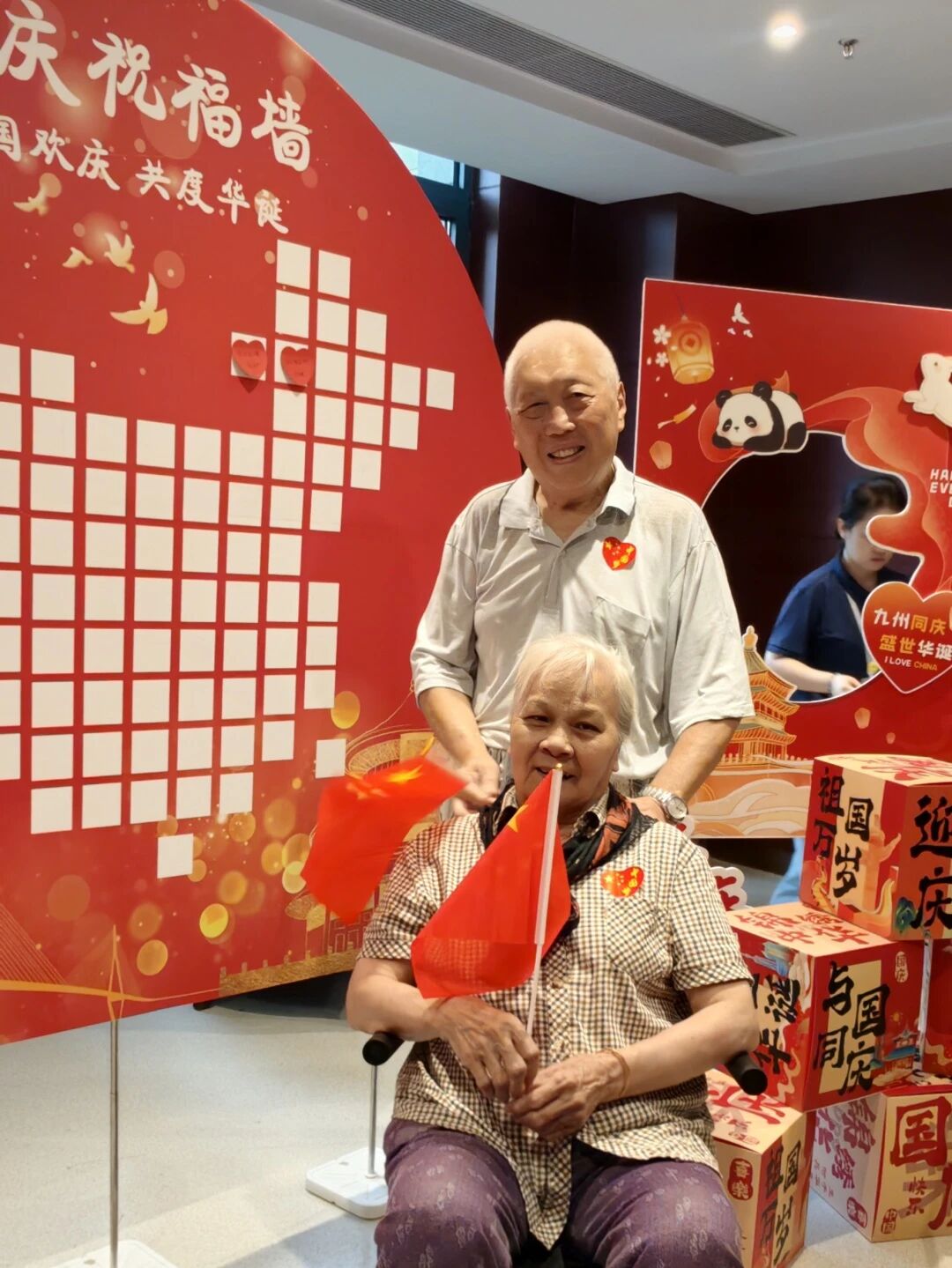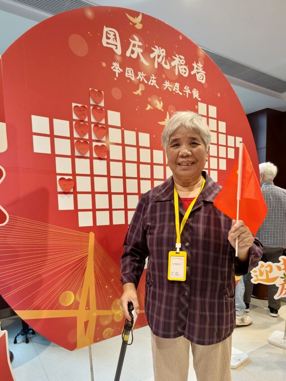 大厅的国庆祝福墙成了“告白现场”!红底圆牌上,心形便利贴写满对祖国的深情——“祝祖国繁荣昌盛”“日子越过越红火”。陈爷爷特意将“祖国越来越强”贴在最显眼处,坚定地说:“这话得让所有人看见!”