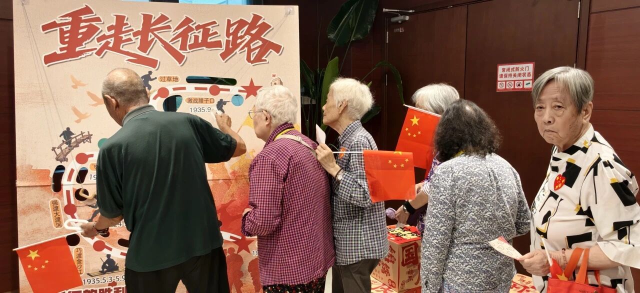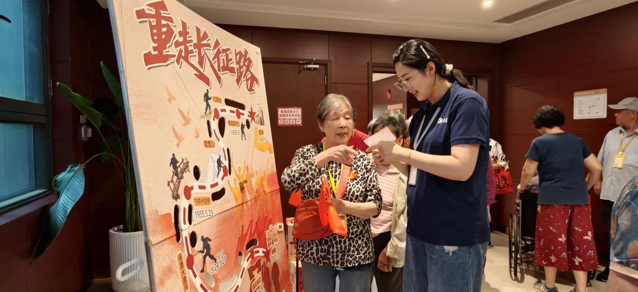 游戏板上“飞夺泸定桥”“爬雪山”的图案格外醒目,长者们手持拉环闯关,翁奶奶讲述起年轻时听过的长征故事:“现在的好日子,都是当年拼出来的”,红色记忆在互动中悄然传承。