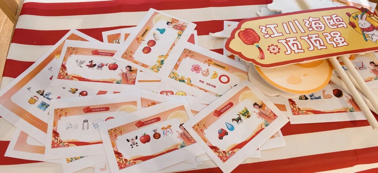 桌上堆叠着印满中秋、国庆元素的谜语卡,长者们凑成小圈“头脑风暴”,金奶奶猜对“圆心”时,得意地挥着卡片:“当年教孙子猜过,这点难不倒我!”