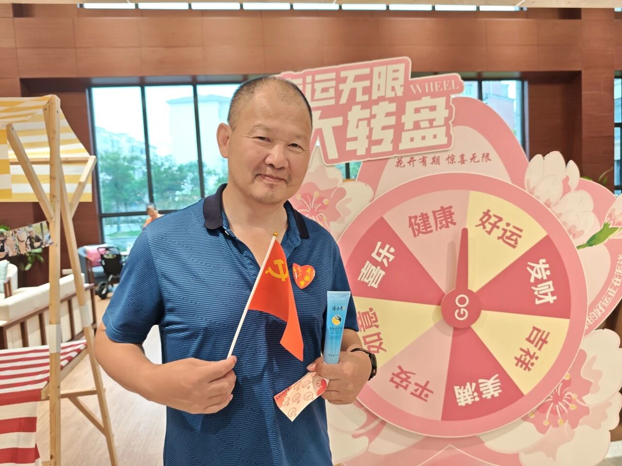 游园“压轴戏”当属幸运大转盘!转盘上“好运”“吉祥”“如意”等祝福对应不同奖品,长者们捏着转盘柄轻轻一推,指针转动时全场都屏住呼吸。张爷爷转到安心枕时笑得皱纹挤成花:“好枕头好兆头,睡好觉住海鸥!”