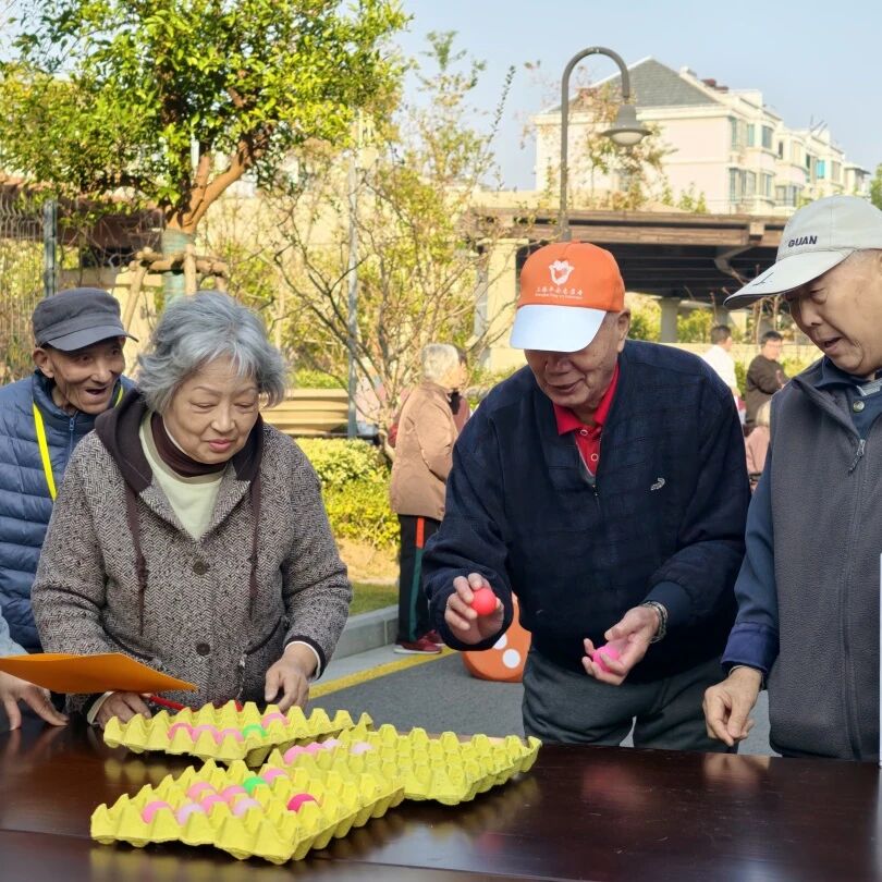 比赛过程中,8个关卡环环相扣,笑点与温情交织:从摇骰子决定出发顺序时的紧张期待,到“报纸卷卷卷”环节中老人们弯腰协作、将报纸卷成“金箍棒”的认真模样;从“旱地钓鱼”时爷爷们互相支招“钓稳点,别让鱼跑了”,到“小鸡下蛋”环节工作人员蹲下帮坐轮椅的长者固定道具,老人抖动身体时的憨态引得全场大笑;团队战“气球夹挤”中,大家屏气凝神小步挪动,生怕气球“爆炸”……每一关都充满了挑战与欢乐,展现了海鸥养老院长者们不减当年的活力与童心。