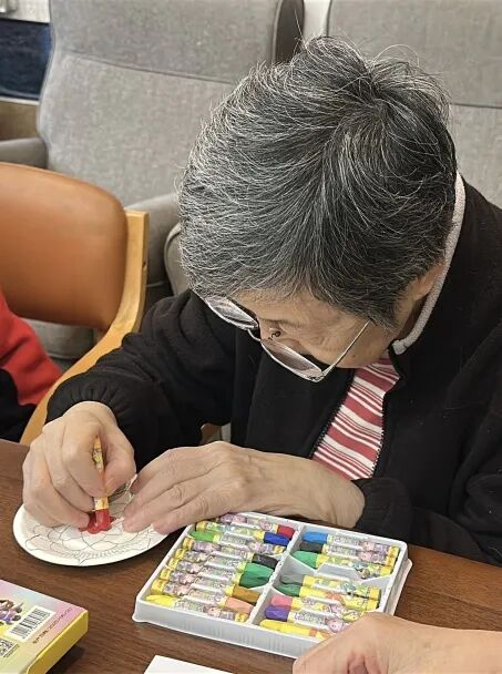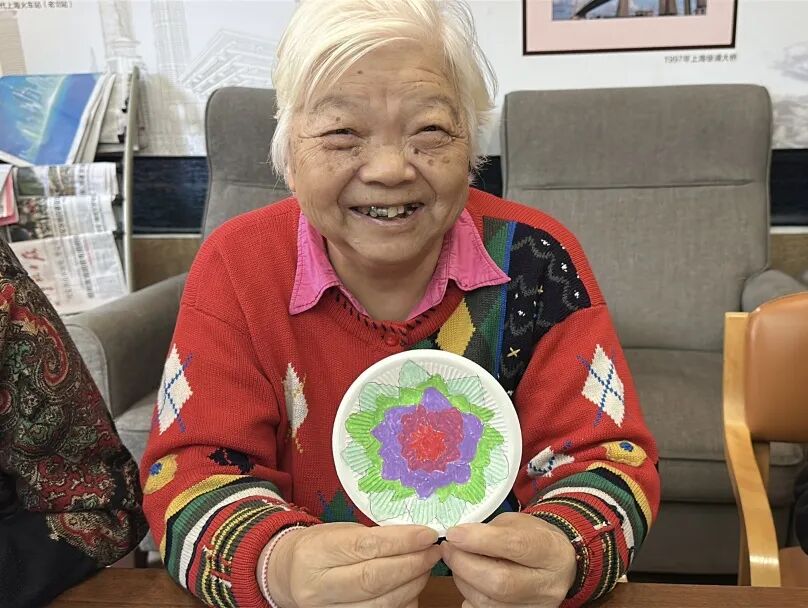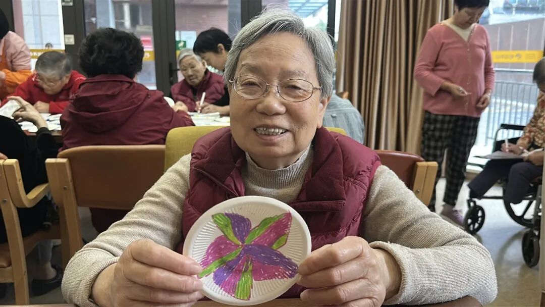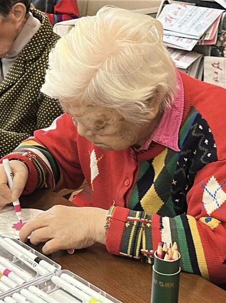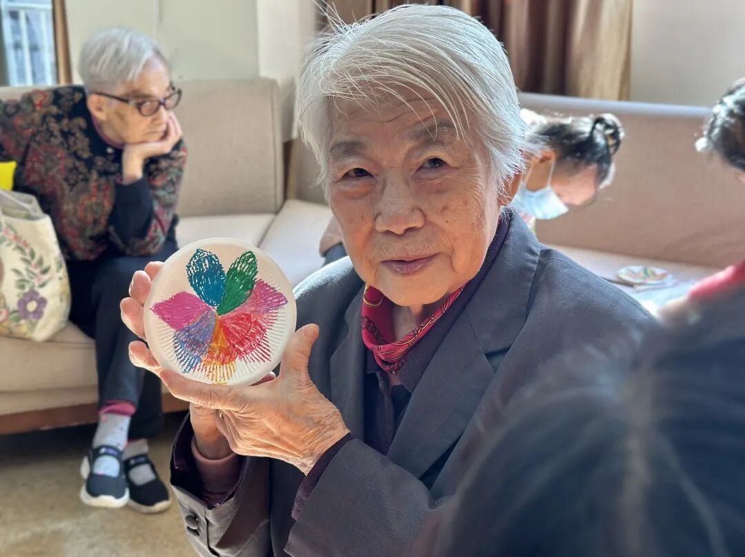 在专业老师的引导下,长者们围坐在一起,畅所欲言,分享心声。随后,大家拿起画笔,不受任何技巧的束缚,只跟随当下的心情与回忆,在画纸上自由地挥洒色彩。