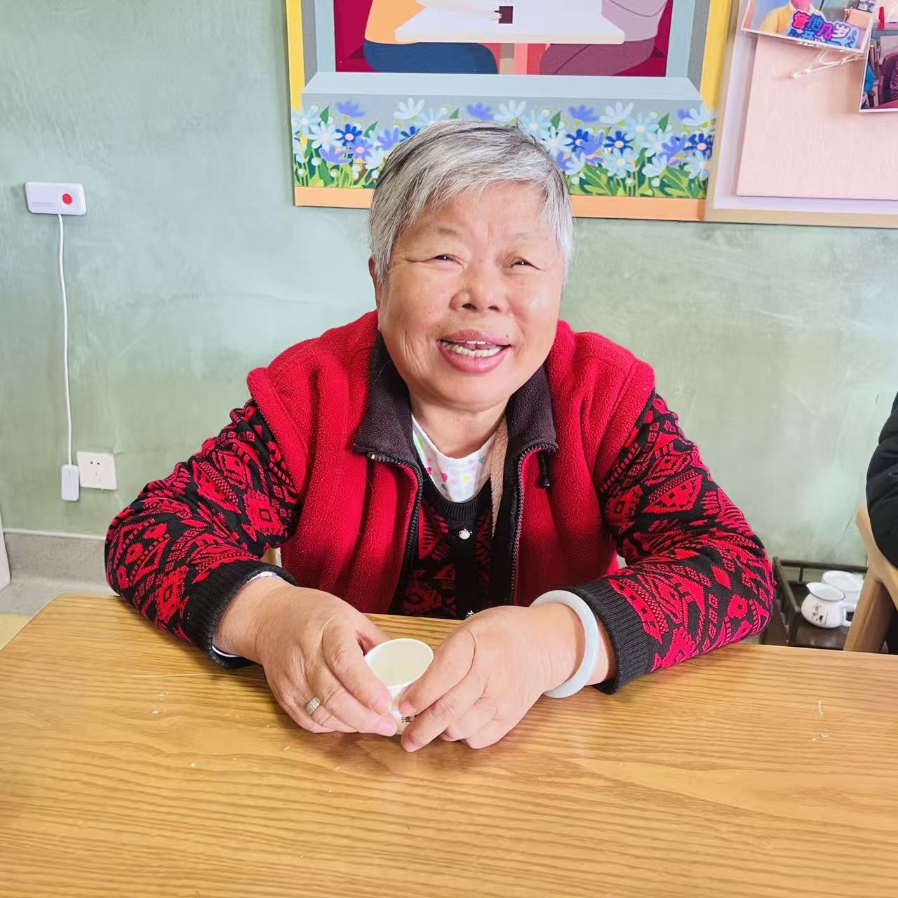 随后,社工为长者们奉上特别准备的热饮与茶点。考虑到认知症及不同健康状况长者的饮食需求,茶点以低糖、易咀嚼、易消化为原则,搭配醇香的热茶。一杯杯暖茶,不仅温暖了长者的双手,也传递出细致入微的关怀。大家围坐一堂,品茶聊天,场面温馨融洽。