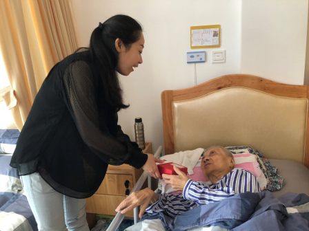 秋高气爽,金桂飘香,迎来了一年一度的中秋节,中秋节是中国的三大传统节日之一,尊老敬老是中华民族的传统美德,9月24日上午,周家桥街道综合为老服务中心院长吴贇为入住的每位长者送上最真挚的祝福及精心为长者准备的中秋礼品,也根据上海老人的习俗特意为长者准备了酱鸭和芋艿,希望让每一位长者住在这里能够感受到更多的关爱,就像在自己的家中一样一样温馨,同时与长者交谈我们会继续发扬尊老、敬老、爱老、助老的传统美德,认真做好服务工作,用自己的一份爱心、善心、孝心和细心照料你们的生活,让长者们老有所养、老有所乐,在综合为老服务中心这个大家庭里安享晚年。