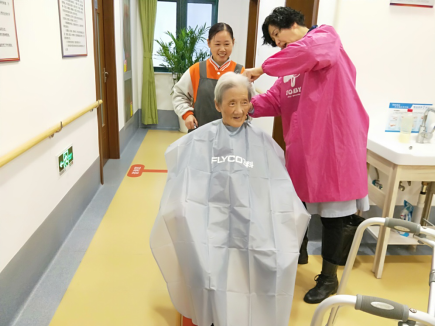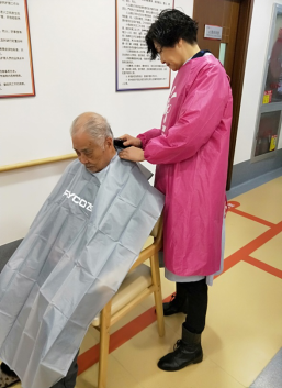 为了最大限度让入住在周家桥街道综合为老服务中心的长者享受到更多的服务,11月27日上午9点护理部主管龚波在二楼活动大厅为入住的长者以及社区居民开展理发活动,理发围布、理发器具一应俱全,再加上娴熟的技术,为长者剪下烦恼丝,打造全新的发型。