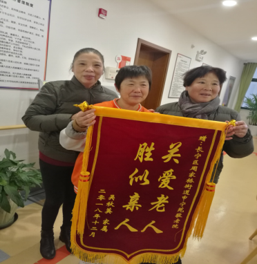 家属表示,我母亲入住这里已经有一个星期的时间,几位护理员勤勤恳恳,无微不至的照顾她的母亲,了解我母亲的生活习惯。我母亲也表示住在这里很开心,每天跟着社工小扶做做手指操与一些文化文娱活动,住在这里吃的好护理的也好,是真正的养老生活。护理部主管也是格外关心我母亲的身体情况,定期为她测量血压血氧等,时时刻刻关心她的心理情绪,为此特意送来锦旗表示感谢得到这样的荣誉,为老中心工作人员倍感珍惜,也深受鼓舞。