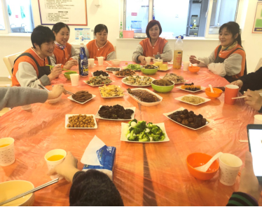 今晚的年夜饭邀请了社区助餐居民代表、社区物业代表,两桌由为老中心厨师奉献的迎春晚宴满满当当热气腾腾!此次晚宴安排了分享、歌唱与沪剧、抽奖等有趣的环节,节目精彩纷呈,高潮迭起。让员工在品尝美味佳肴,欣赏精彩节目的同时,收获了一份来自为老中心这个大家庭每位成员对企业的归属和热爱,对养老事业的热情和信心,对团队伙伴工作协同的高度认可和殷切期望。