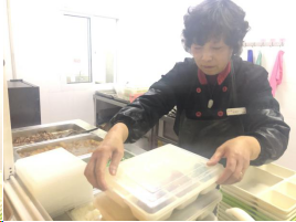 中午10点30分,在大家还在悠闲的休息的时候,我们的厨师张莉君阿姨,就已经站在了她的工作岗位上。
