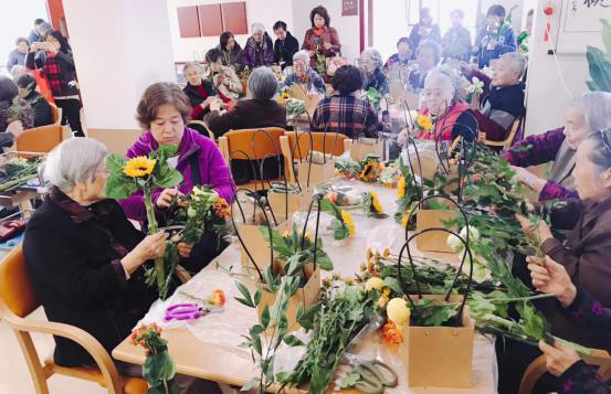 下午两点,许多长者来到六楼大厅参加一个秘密任务,那就是向来自中延基金会的艺术插花老师学习插花,同时他们插好的最终将送到院内三月过生日的长者们手中作为生日礼物。在得知这个消息之后,各位参加活动的长者更加积极了,跟着老师学习地也更加认真。