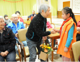 小小志愿者也适时登场。他们为长者们带来了钢琴演奏、小提琴演奏与诗朗诵,最后还为在座的长者们送上了合唱《生日快乐》。虽然小朋友们有些害羞,但是爷爷奶奶们对于他们的表演十分满意,掌声不断。