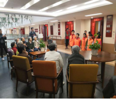 二楼的长者们早已再大厅做好等待孩子们的出现。小朋友的表现也没有辜负长者们的等待。第一个节目时一位同学的独唱,虽然是自己一个人唱歌,但小朋友毫不胆怯,放声歌唱,长者们纷纷拍掌叫好,第二个节目是诗朗诵,五位小朋友一齐朗诵,第三个节目便是猜谜语了,长者们对于小朋友出的谜语还是很快就能答出来的,一位同学见此便出了个脑筋急转弯,想要难倒各位爷爷奶奶,“小动物们一起到便利店买东西,但是只有小羊没有被赶出来,其他的动物都被赶出来了,这是为什么呢?”果不其然奶奶们没有答出来,随即小朋友说出答案:“因为便利店二十四小时不打烊。”引得长者们笑成一团,小朋友也不好意思地笑了。