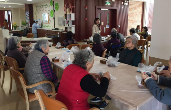 在长者们到达活动室时,老师已经将所有的材料准备好一份份放在桌子上。长者们好奇地看着袋子内的小小植株,这就是多肉植物吗?随后老师仔细地告诉长者们种植多肉的步骤。