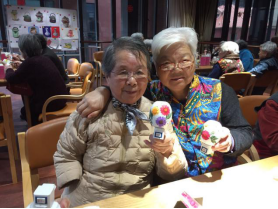 老师将准备好的材料分发到各位长者的手里。刚开始在长者们手中的小灯平平无奇,随即老师将装饰品,也就是一些干的真花交到各位长者手中,便开始指导如何装饰这盏小灯。长者们的想法都很不同,有的想着将红花贴在上头,有的想着将绿叶放在上面可能会更好看……就这样,每位长者手中便多了一盏与众不同、全靠自己DIY的小夜灯了。