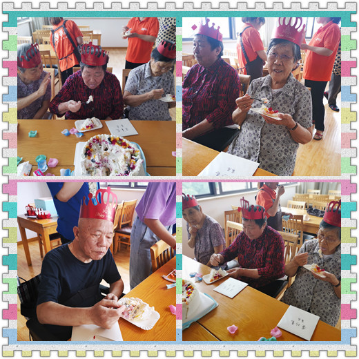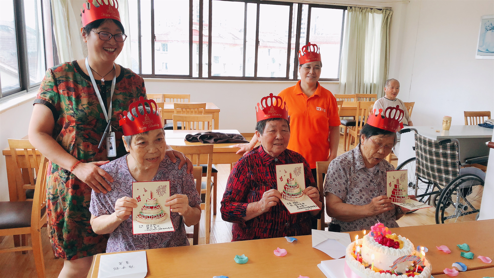 工作人员为长者送上了切好的生日蛋糕。吃着健康美味的蛋糕,看着写满祝福语的生日卡片,长者们心里暖洋洋的,脸上露出了幸福的笑容。