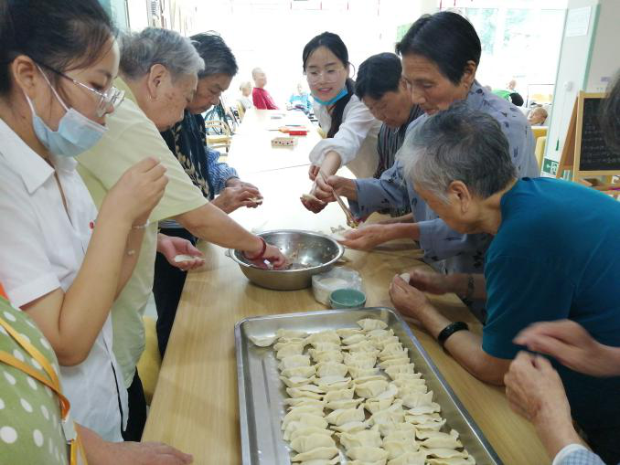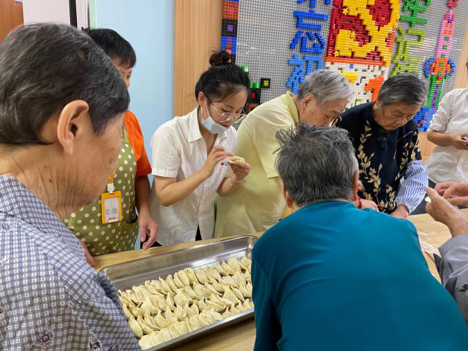 为了欢迎日精物流前来慰问的爱心人士们,长者们巧手包起菜肉水饺作为爱心午餐,来表达自己深切的谢意。娴熟的手法,就一会儿的功夫,一大盆的饺子就完工了。长者们还给日精物流的小伙伴示范如何把饺子包的漂亮,让小伙伴们情不自禁夸赞这些特殊长者们的生活技能非常过硬,值得她们学习。看着自己劳作的成果,长者们各个乐开了花,觉得非常有成就感和满足感,为这个暖心的大家庭尽自己的绵薄之力。