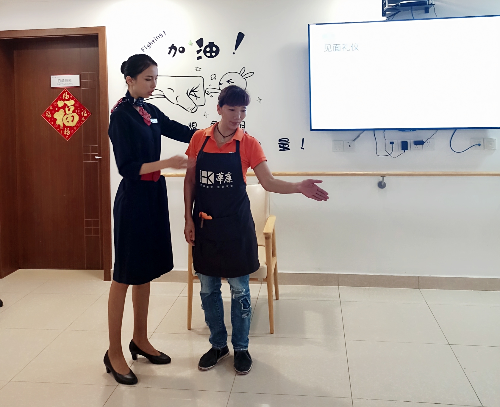 在培训时现场的氛围十分活跃,礼仪老师十分耐心的给我们讲解并演示规范的行为动作,不厌其烦的一一去纠正我们不够标准的动作。礼仪老师也在培训结束后,用她们的亲身经历教给我们一些实用的经验,教我们如何在照护长者中应用好微笑服务,如何为每一位长者提供最优质的服务。护理员王阿姨说:“通过这次培训我们知道了微笑服务的重要性,我们会更加努力的去规范自己的行为,我们会把微笑服务在照护长者中运用得淋漓尽致,给长者带来优质的服务体验。”