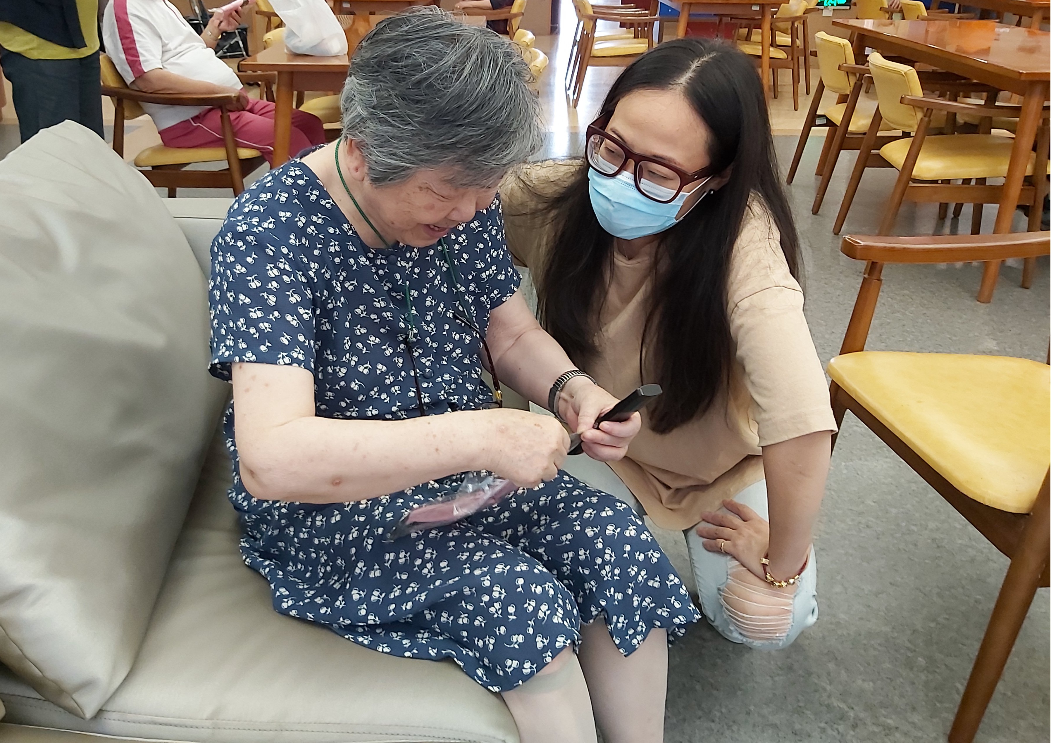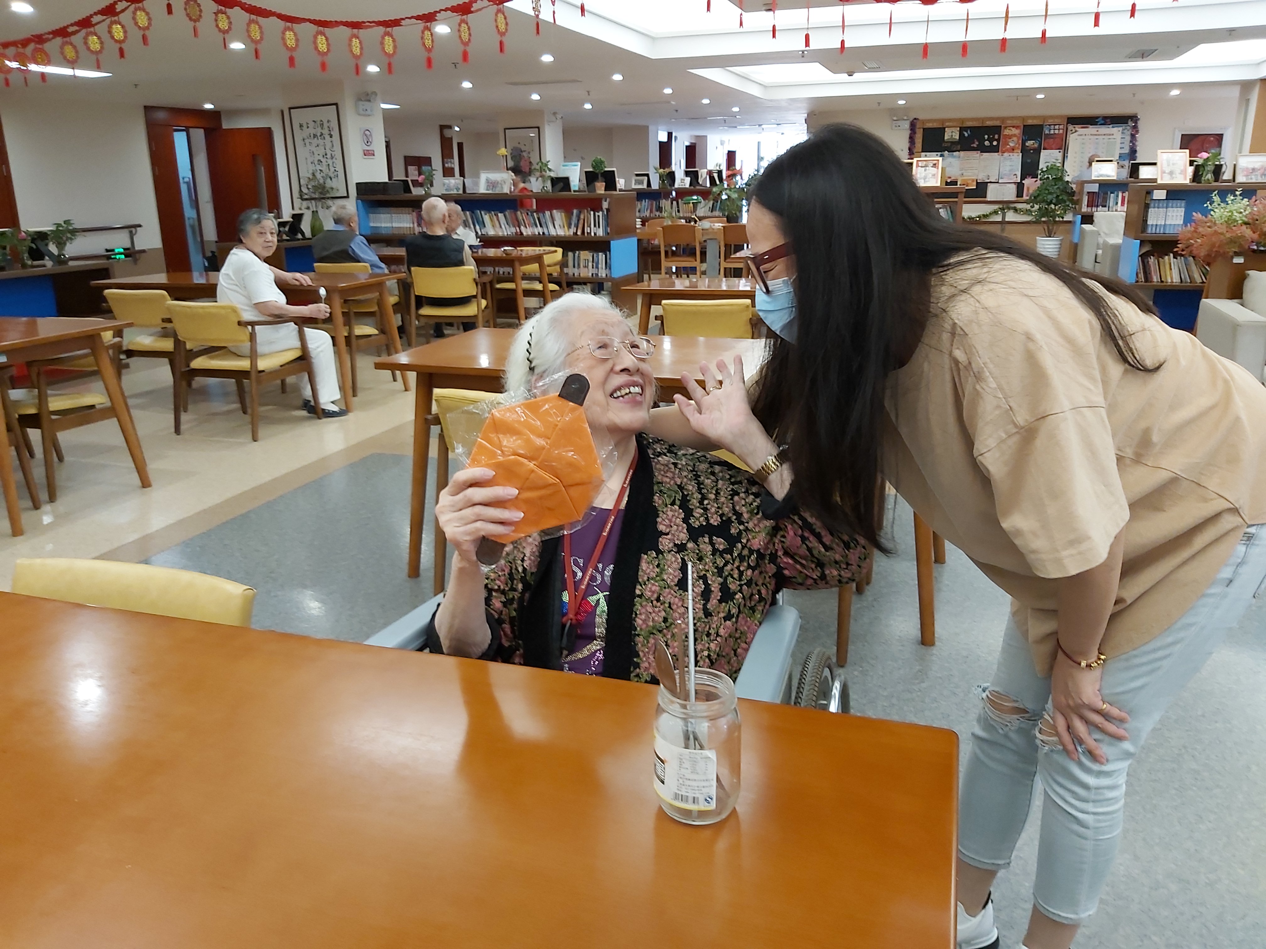 “我的学生,现在还经常联系我呢······”一位长者和院长聊起了自己的学生,院长拉着长者的手安静的倾听着,不时点点头陪伴着长者。温馨便是这样,只要稍稍留意,便能发现温馨在福利院内无处不在。