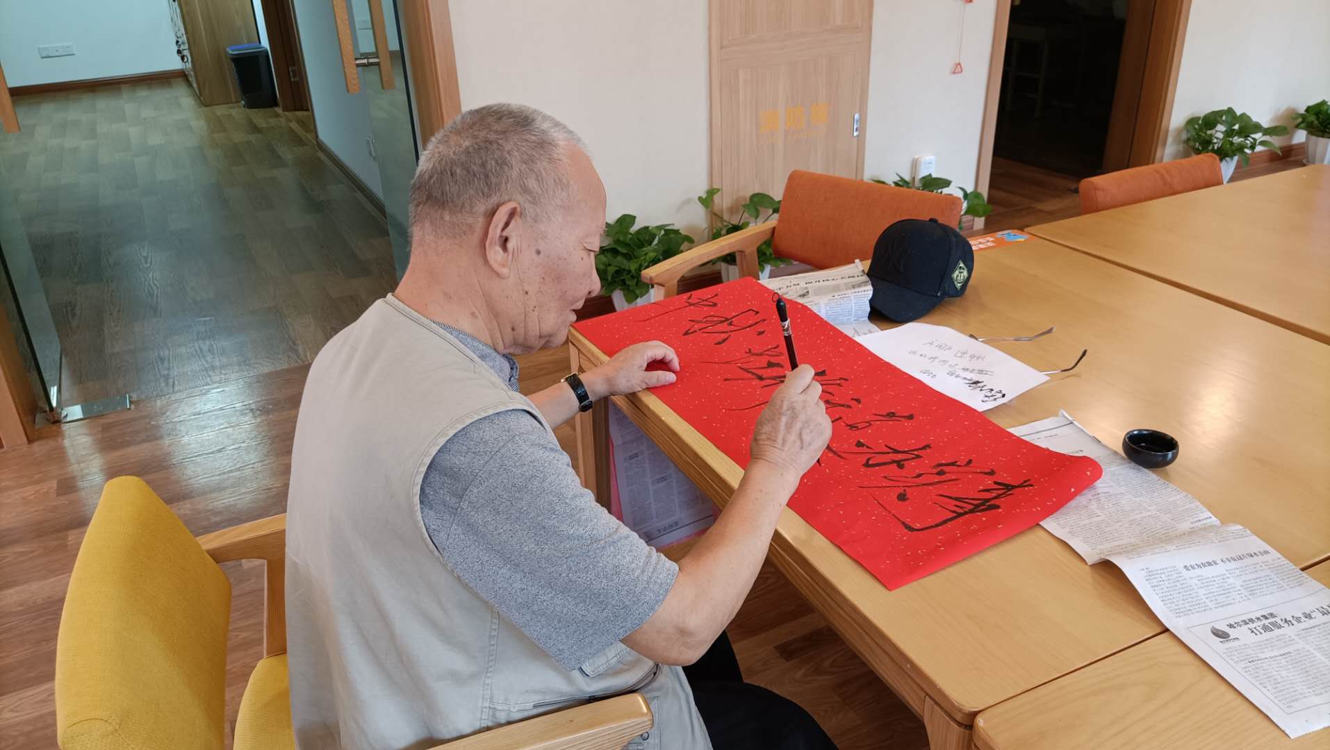 唐伯伯爱好书法,中秋国庆活动时还为我们提祝贺词,挥洒墨水,刚劲有力,抒发对虹桥敬老院的感谢之意唐培鑫长者对我们说,“敬老院不仅仅是一个单纯住的场所,也是一个让人身心愉悦的场所。原本以为敬老院冷冰冰的,没想到大家很热情,也很温馨。”