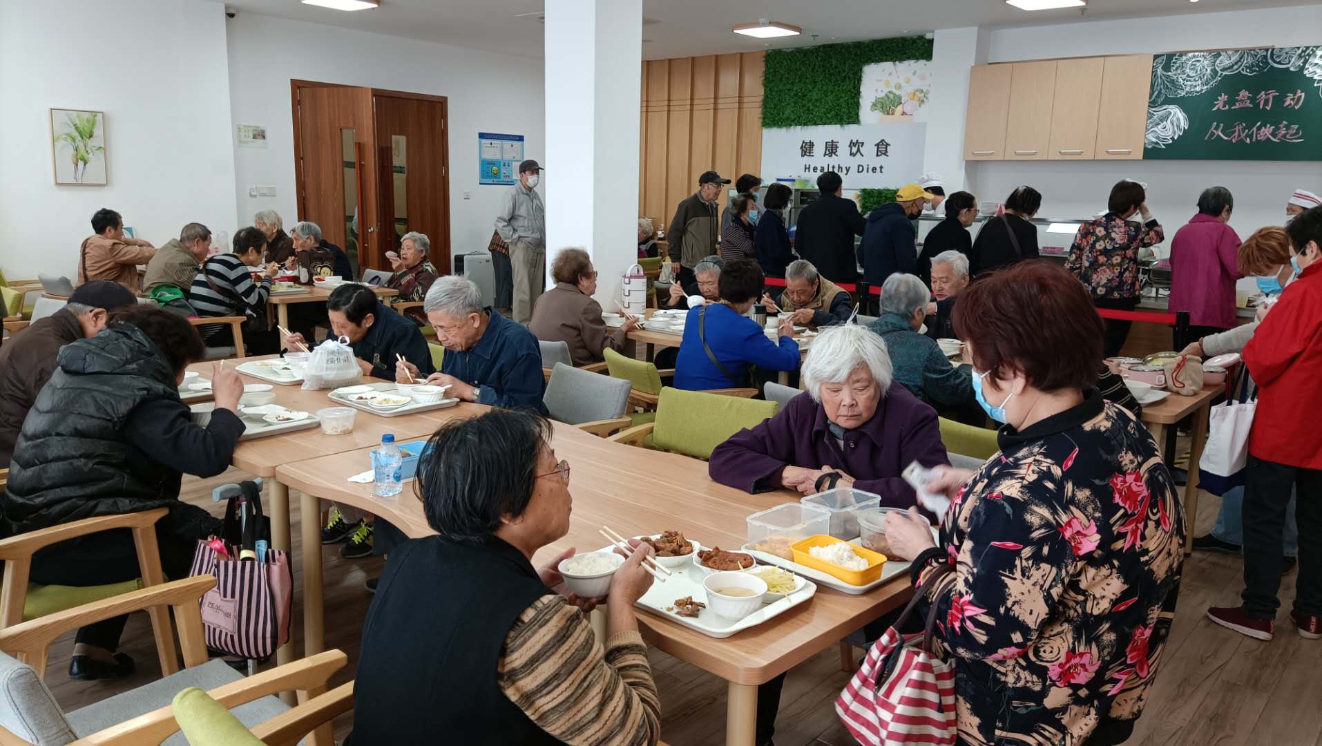 一楼助餐点门庭若市,长者们说,“社区中开展助餐点,方便了很多。以前还要买、汰、烧,现在在这里吃饭又实惠又好吃。”