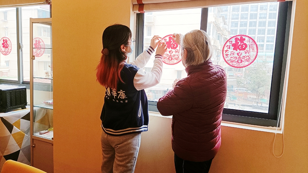 新的一年,虹桥街道综合为老服务中心开启了新篇章。新年之际,院内大家一起贴起了窗花,寓意吉祥快乐。工作人员给爷爷奶奶们准备新年特别礼物——小红灯笼。工作人员将一个个小红灯笼挂在长者们的房间,爷爷奶奶们笑开了花,长者们纷纷说道,“你们真的太贴心,新年的气氛一下子很浓了。”