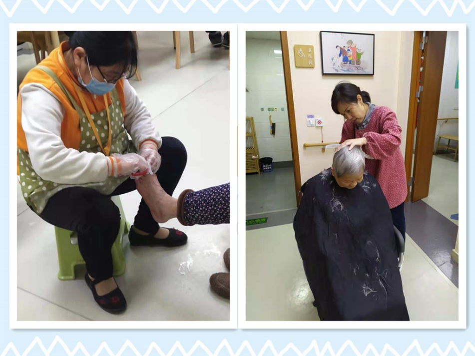 “爷爷,你的指甲长了。”“奶奶,快过年了,你的头发该剪了。”有的时候,我们护理员口中的“唠叨”也是一种关怀,从小细节上做起,尽心尽力地照护好每一位长者是我们一致的目标。