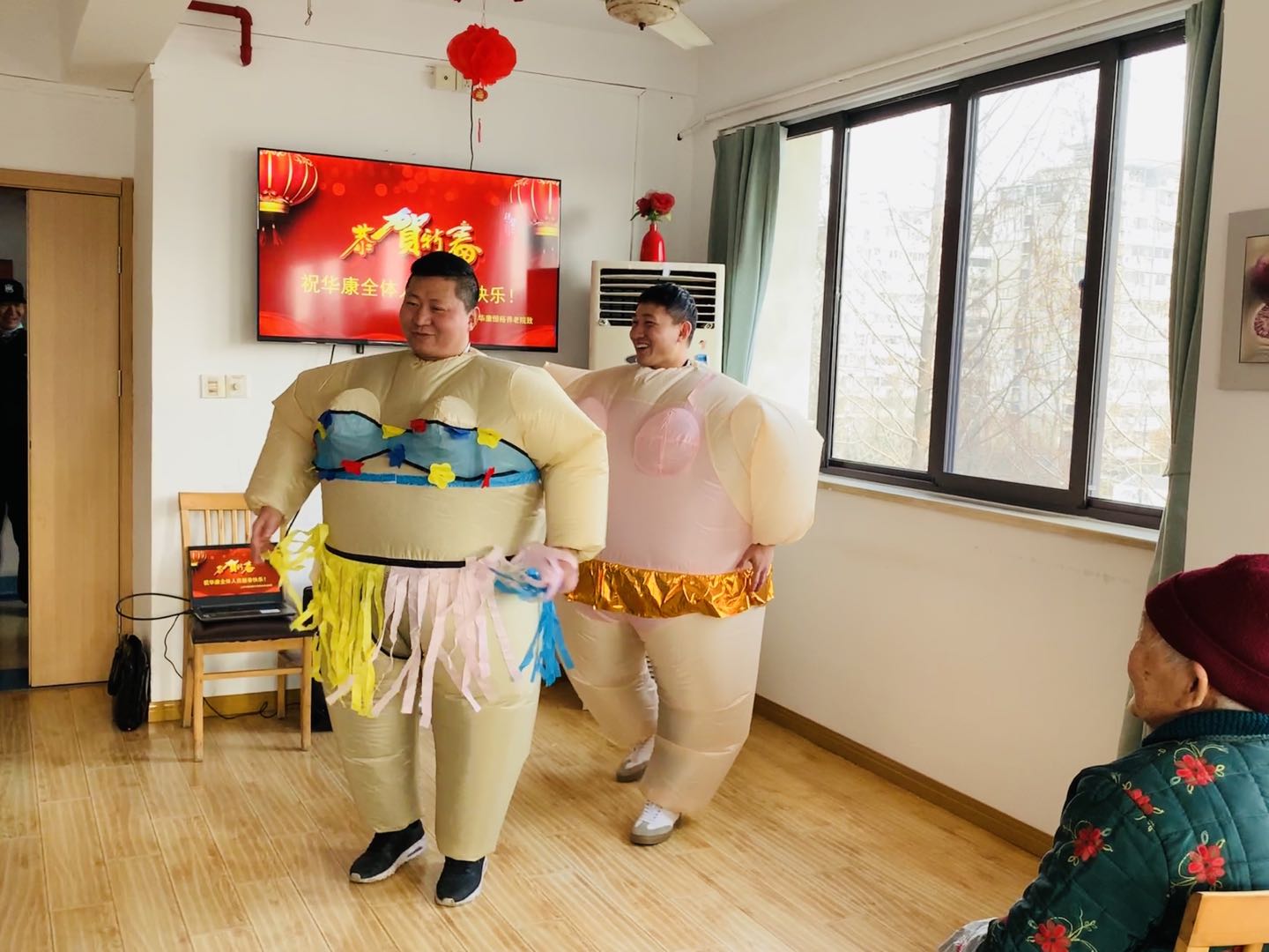 长者们用一首大合唱《东方红》拉开了2021年华康恒裕院迎春联欢会的序幕,开场舞《双人舞》瞬间点燃全场气氛!护理团队为爷爷奶奶们带来了小品《大胖和二胖》,生动有趣的表演逗得大家喜笑颜开!