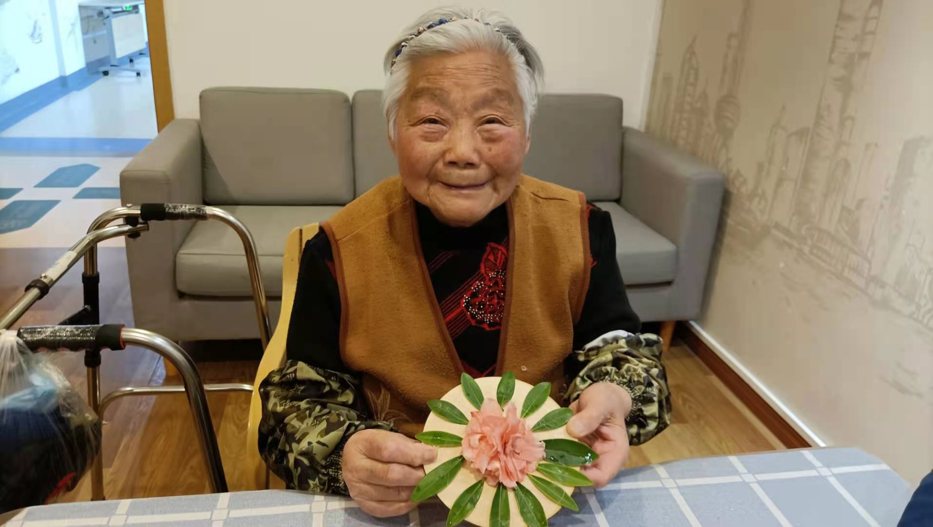 在活动最后一步,也是点睛之笔。每人一朵花,大家一起将花朵放在木盘中间。崭新的创意木盘画诞生啦~爷爷奶奶们拿着自己做好的作品都格外开心,在动手动脑过程中也间接接触了大自然,感受春天的气息。木盘画代表生机,春天最美丽的样子在木盘画里呈现。每个木盘画都代表不一样的美好含义,一花一世界,一叶一菩提。此次手工活动为序章,即将开启乐活蔬果园系列活动,真正感受大自然的神奇魅力,敬请期待~