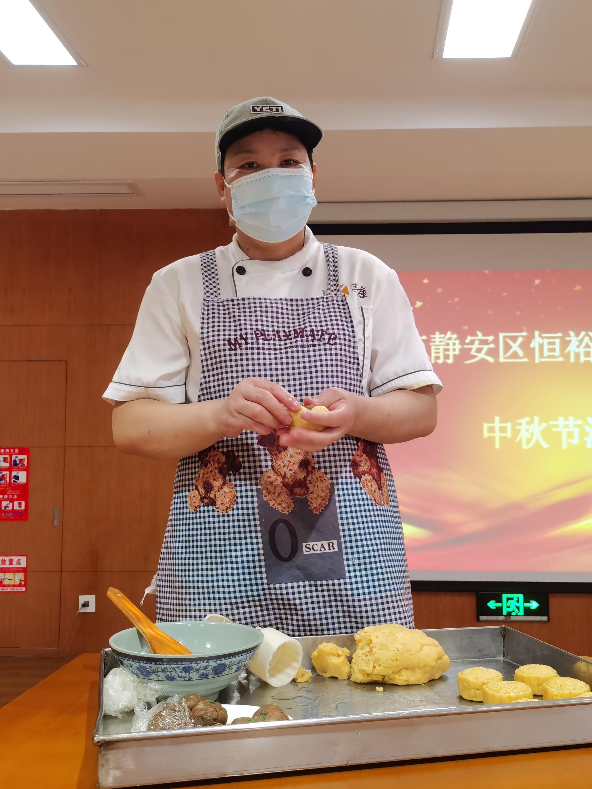 活动前夕,面点师已经提前制作好了三十份月饼,在面点师现场制作完成后,我们用抽奖的方式,将月饼赠送给到场的部分长者们品尝。