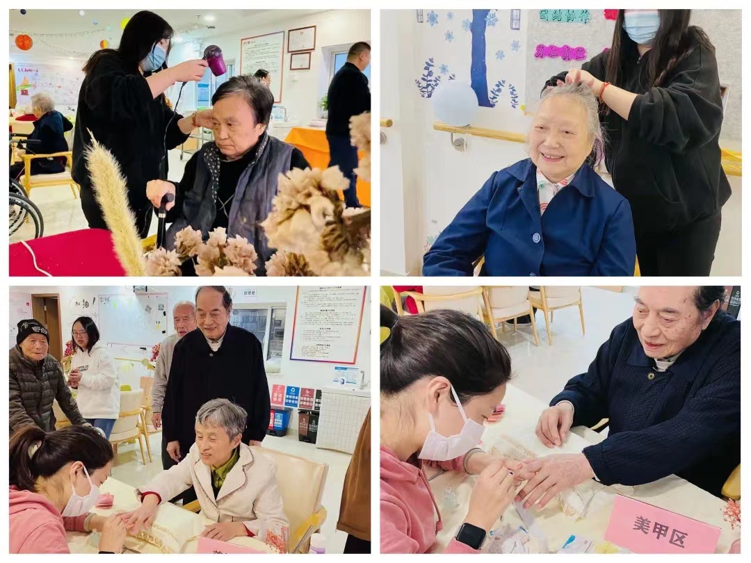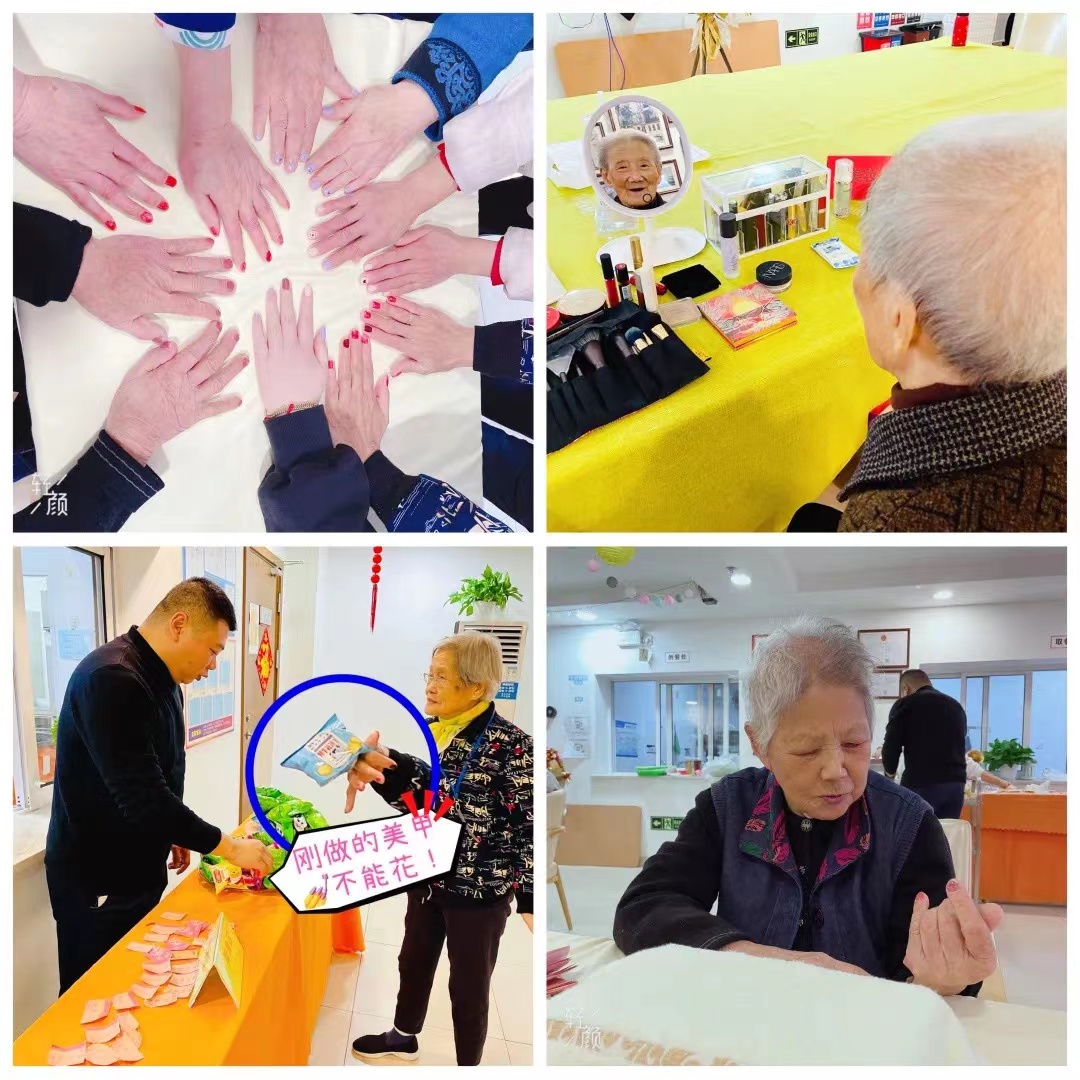 精油护发、美甲手护、把头发扎一个小揪,画上一个美美的妆,奶奶们转眼看着镜子里美丽、散发光彩的自己,并受到来自围观长者们的一片赞美,纷纷要求拍照留念,欢乐有爱的氛围感染着在场的每一位,也激发了爷爷们的爱美之心,纷纷跃跃欲试的尝试体验了一把定制美甲服务。