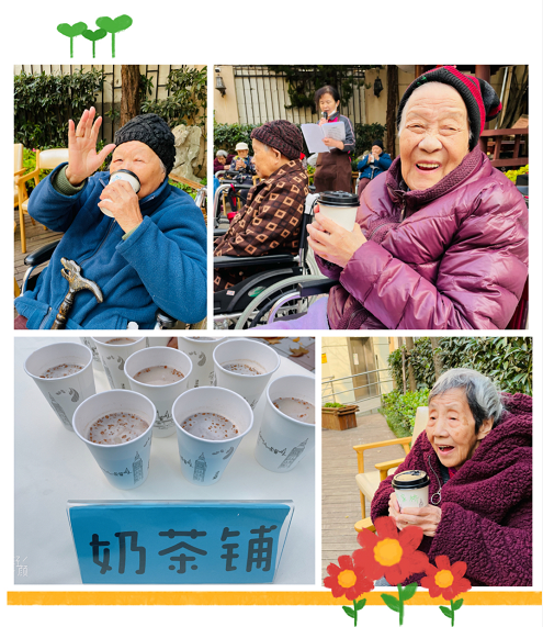 爷爷奶奶们手上捧着的奶茶