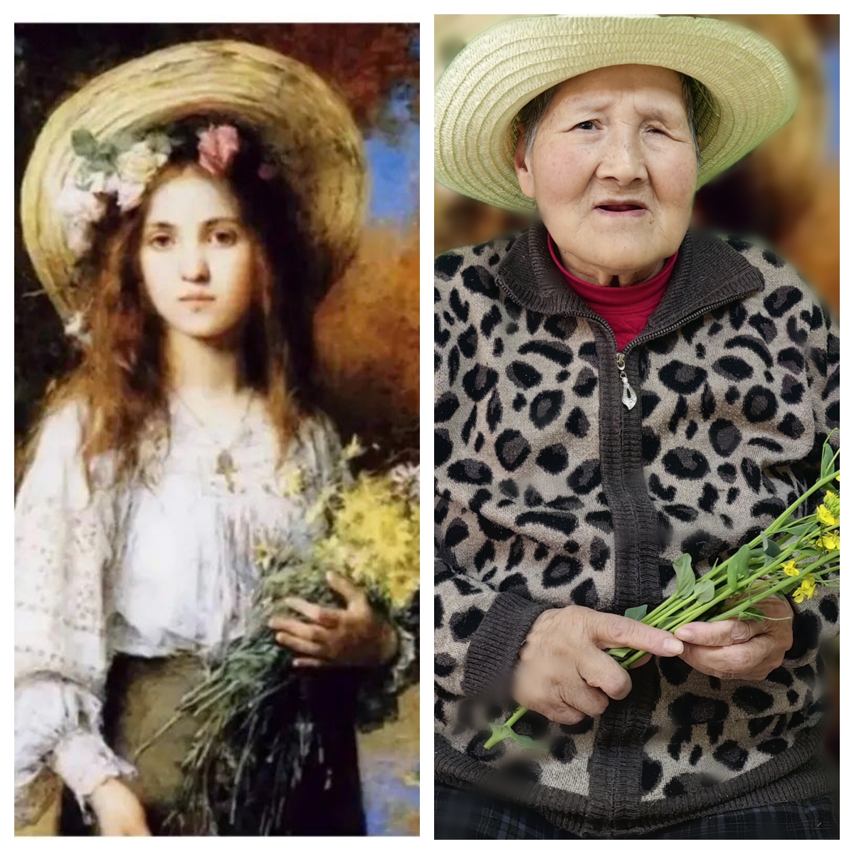 《有花的女孩》刘奶奶和顾奶奶带着花园里现摘的油菜花演绎名画。