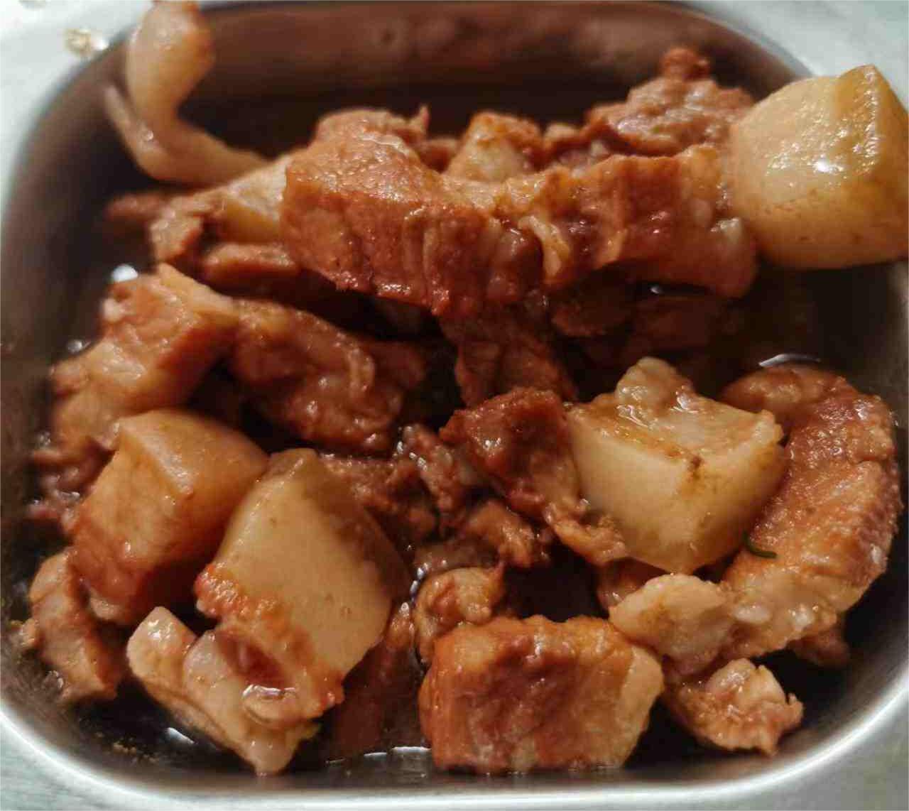 院内的腐乳肉选用稍稍肥腻的五花肉,加了腐乳以后中合了口感,因此院内大厨烧的腐乳肉口感软糯,肥而不腻,长者们都爱吃。据大厨郑师傅介绍,腐乳肉作为一道家常菜制作过程并不算太复杂,但这一锅腐乳肉出锅却也是非常耗时耗力的,从早晨七点便要开始着手准备,到了大约十点半这道美食才算正式完成。