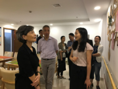 周家桥申宁苑2018年4月正式对外开放,温新华一行领导冒着毛毛细雨来到三泾南宅小区内的周家桥申宁苑,实地了解中心开放后的运营情况。张总为领导们简要介绍了周家桥申宁苑的整体功能布局。本中心以“康复型养老、医养结合”为特色,加入“智慧养老”的理念,衔接日托、康复护理等居家养老服务和机构养老之间的功能,做好了9073格局中7%与3%之间枢纽和桥梁服务,从而满足了社区长者在基本保障、生活照料、医疗康复、精神文化等各方面需求,实现了日间照料、长/短期照护服务、喘息照护服务、助餐点、康养驿站、养老顾问点、社区护理站、居家养老服务为主的“六大功能性”服务项目,真正意义上成为综合为老服务中心。王书记一行领导先后参观了周家桥为老服务中心的护理站、治疗室、文体活动区、阅读区、就餐区、心理咨询室、家庭会客室、室外园艺空间等区域,并认真听取了机构的整体定位、功能和特色,并给予了充分肯定,并对院内活动、长者照护、设备设施等方面工作给予指导。